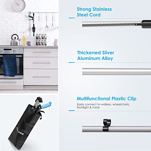 [Ergonomisch comfortabel ontwerp] Hoge duurzaamheid en antislip grip is gemaakt van gestructureerd zacht materiaal vulling, zodat je gemakkelijk met één hand kunt bedienen. De grip heeft een ingebouwde haak, je kunt hem overal ophangen. Plastic clips op schachten zijn veelzijdig, die gemakkelijk kunnen worden aangesloten op wandelaars, rolstoelen, zaklamp, enz. Maximale klauuropening tot 4,3 inch met antislipmateriaal om te voorkomen dat objecten uitglijden. Er zijn sterke magneten aan beide zijden van de punt, je kunt moeiteloos munten, sleutels, enz. oppakken.