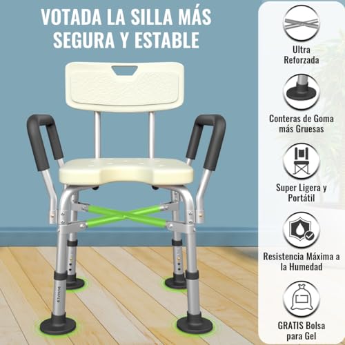 Eenvoudige montage: gedetailleerde handleiding in het Spaans. Wees voorzichtig met goedkope en minderwaardige modellen en veiligheid. Wat wij kunnen verzekeren is dat onze stoel extreem stabiel is en je veilig en comfortabel houdt. Geschikt voor douches (let op de afmetingen als het voor badkuip is)