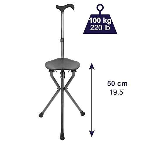 ♥ MET ZETEL: De wandelstok heeft een klapzitting (20 x 23 cm) die gemakkelijk kan worden geopend voor gebruik als stoel (zithoogte NIET verstelbaar: 50 cm). Eenmaal geopend moet het handvat van de wandelstok aan de voorkant zitten. BELANGRIJK: gebruik het handvat niet als rugleuning.