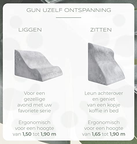 Ergonomisch Leeskussen voor Bed en Sofa – Comfortabel Rugkussen met Memory Foam – Bruikbaar als Refluxkussen, Wigkussen Bed, Bedkussen Rugleuning in Zitten en Liggen, Grijs